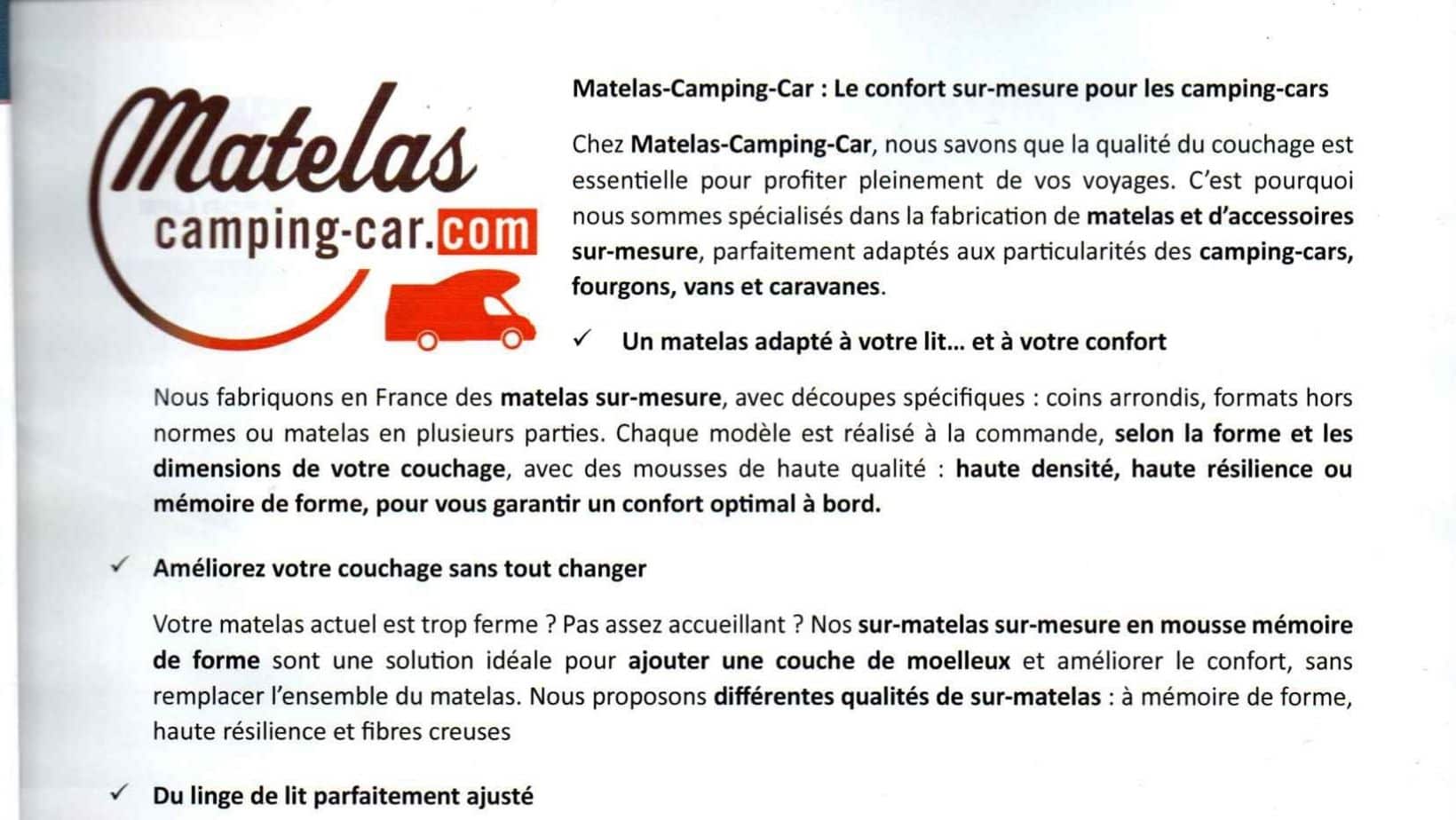 Dans le bulletin de l’association du Cercle Le Voyageur de janvier 2026, Matelas-Camping-Car a été présenté comme le spécialiste du matelas et du linge de lit sur-mesure pour camping-caristes ! Cette mise en avant dans un média réputé auprès des passionnés de camping-car conforte la marque dans sa mission : offrir un confort de sommeil adapté à tous les voyages en véhicule de loisirs. Un grand merci à leurs équipes pour cet article sur notre entreprise, gage de notre expertise et qualité !