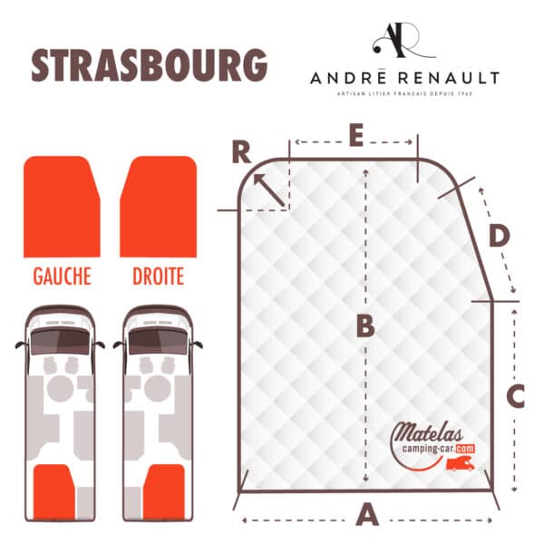 Sur-Matelas sur-mesure pour lit central de forme Strasbourg pour camping-car, fourgon, caravane… 7 qualités de confort différentes. Fabrication française. Garantie...